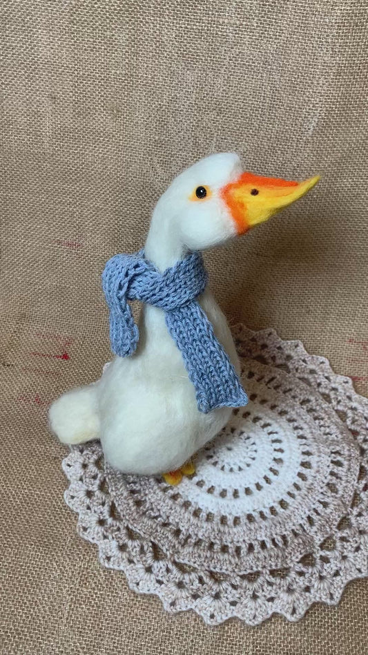 Handmade Needle Felted Goose – Wool Valentine Ornament & Collectible