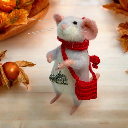 Needle-Felted Pippa the Mouse – Handmade Natural Fiber Art Doll | Whimsical Woodland Decor Collectible Dressed Figurine