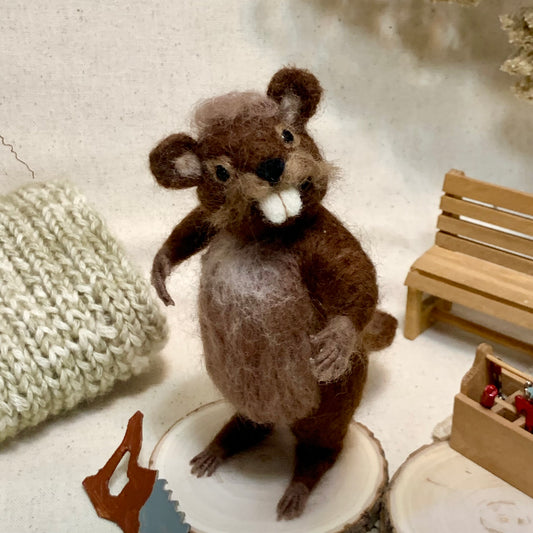 Needle Felted Beaver – Handmade Wool Animal – Bucky the Beaver Woodland Decor – Cute Felt Animal Figurine Gift