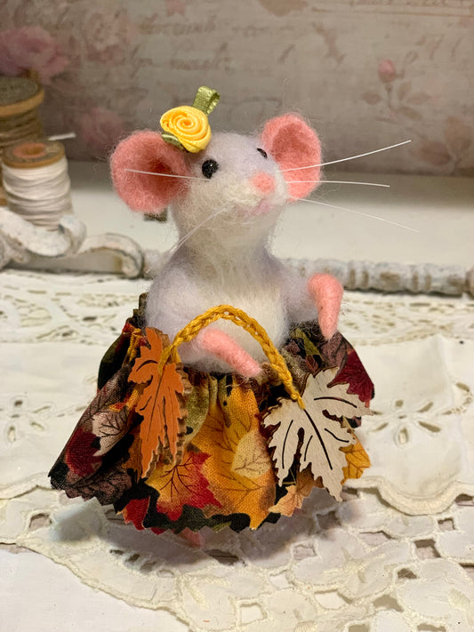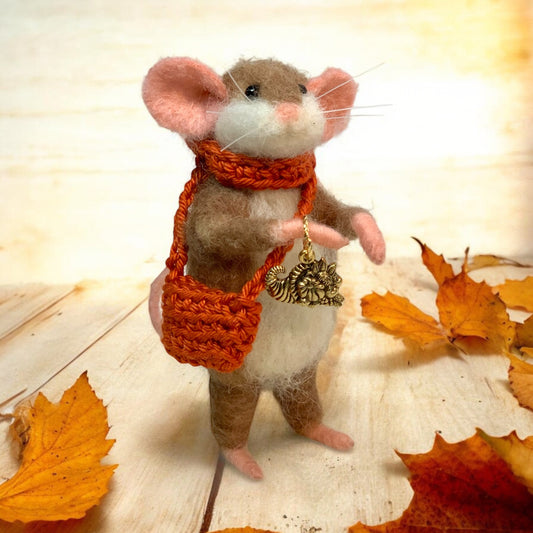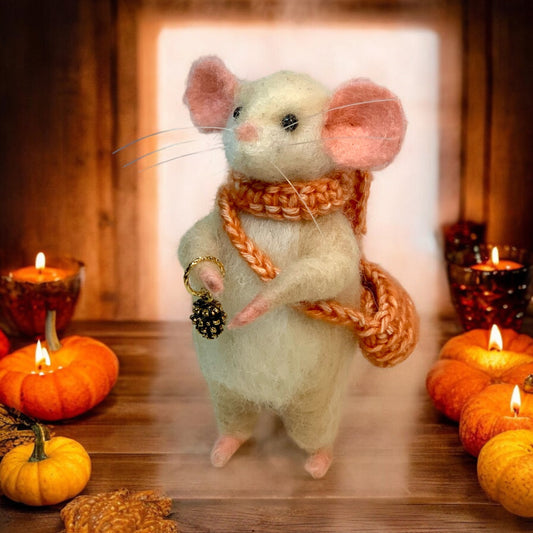 Needle-Felted Mouse Thanksgiving – Handmade Natural Fiber Art Doll | Whimsical Woodland Decor