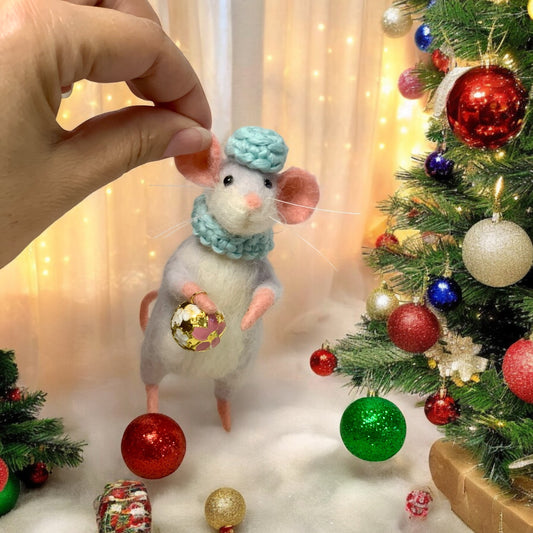 Leo the Needle Felted Mouse | Handmade Wool Animal Toy | Cute Mouse Figurine | Pet Lover Gift | Whimsical Home Decor Christmas Ornament