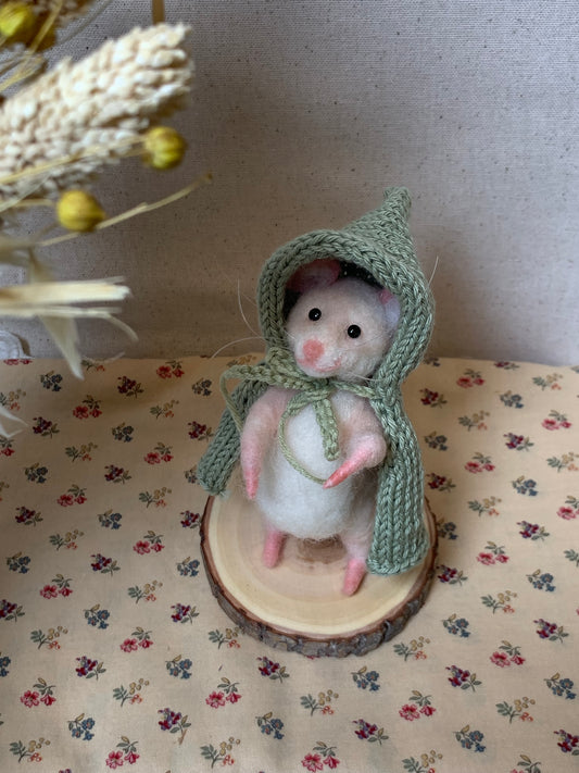 Mary the Mouse – Needle Felted Wool Wanderer with Cloak & Walking Stick | Handmade Collectible Art Doll