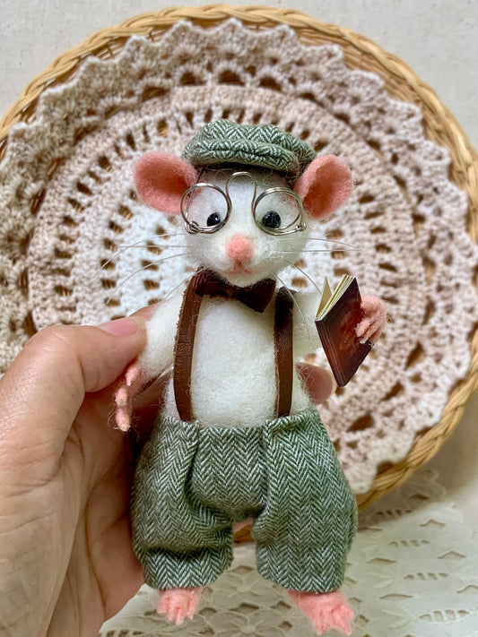 Librarian Mouse – Needle Felted Mouse – Handmade Wool Art Doll, Whimsical Collectible, Vintage Librarian Decor, Gift for Book Lovers