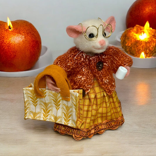 Maple Needle-Felted Mouse – Handmade Autumn Decor, Cute Coffee Lover Mouse, Fall Gift, Wool Figurine for Mouse Collectors Stuffed Animal Toy