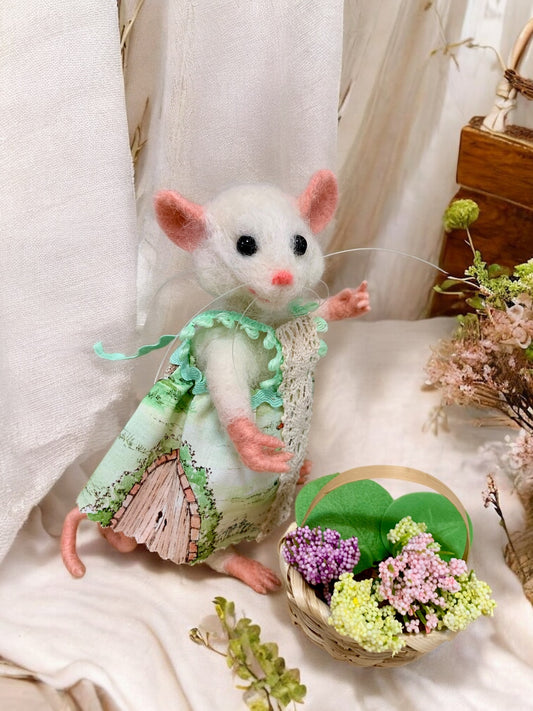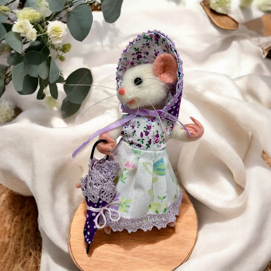 Victorian Lady Summer Mouse Figurine – Handmade Needle Felted Animal for Seasonal Decor
