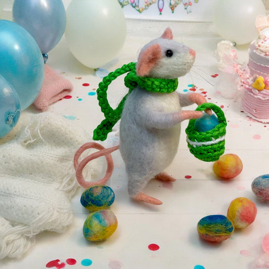 Needle-Felted Pip the Mouse – Handmade Easter Decoration | Natural Fiber Art Doll