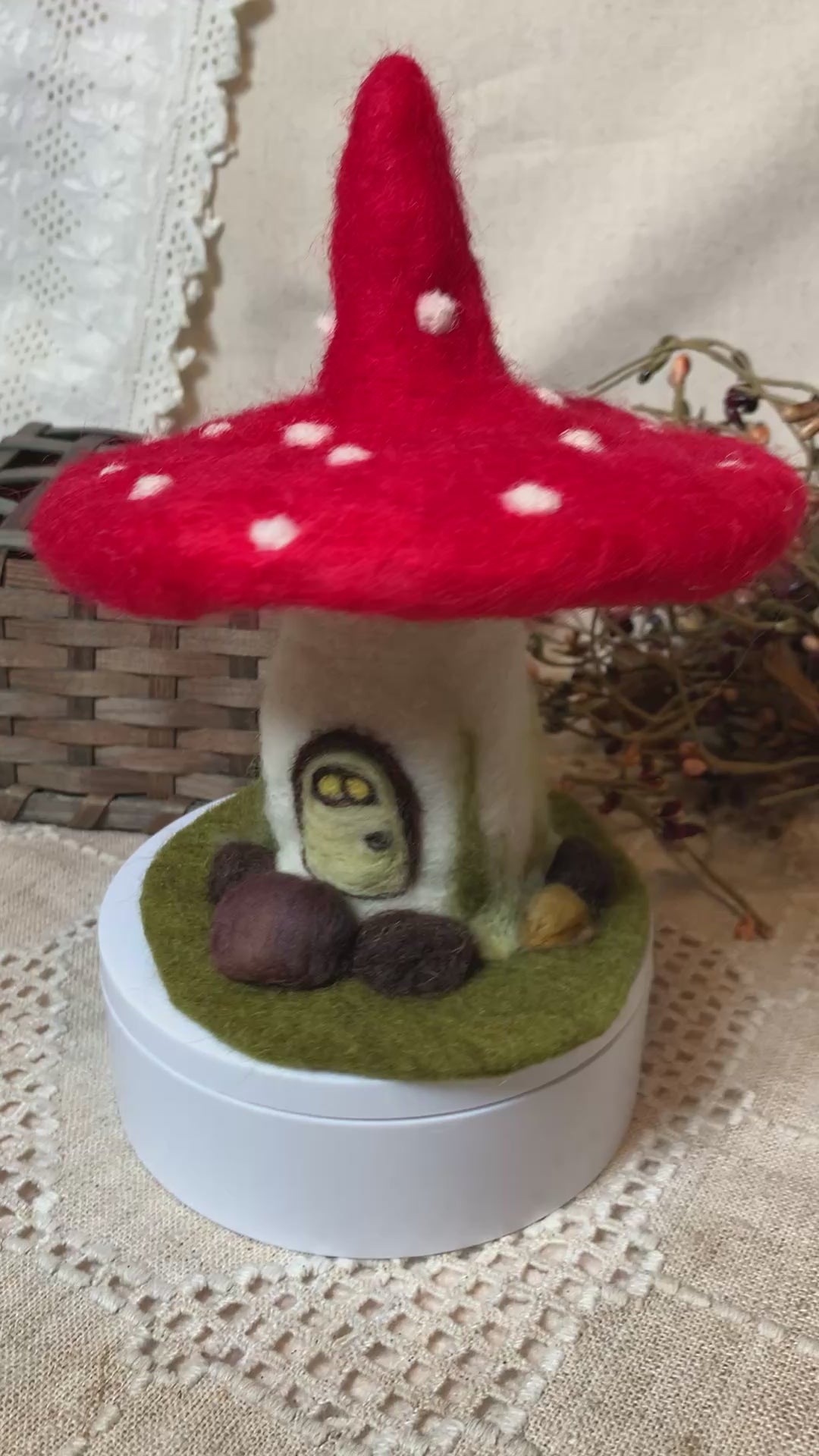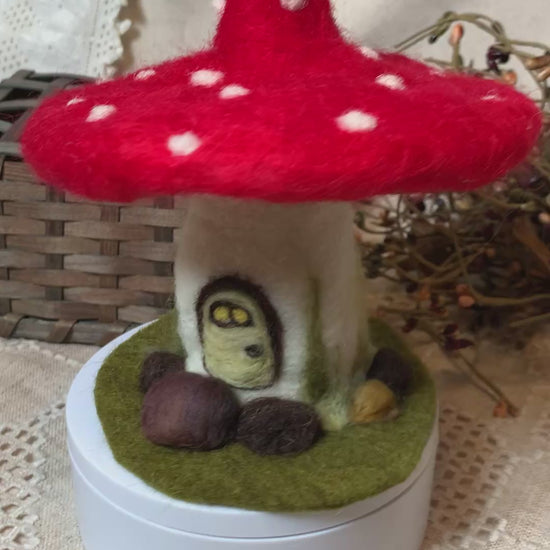 Needle Felt Mushroom House - Fall Toadstool Decoration – Autumn Forest Decor – Handmade Woodland Waldorf Inspired Soft Sculpture