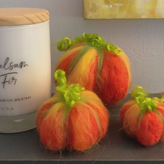 Cozy up your autumn displays with this handmade needle-felted pumpkin. Crafted from luxurious, eco-friendly wool, each pumpkin is lovingly shaped and sculpted—offering a soft, rustic touch to your seasonal décor. From mantle accents to tabletop centerpieces, these pumpkins bring the warmth of fall into any room.